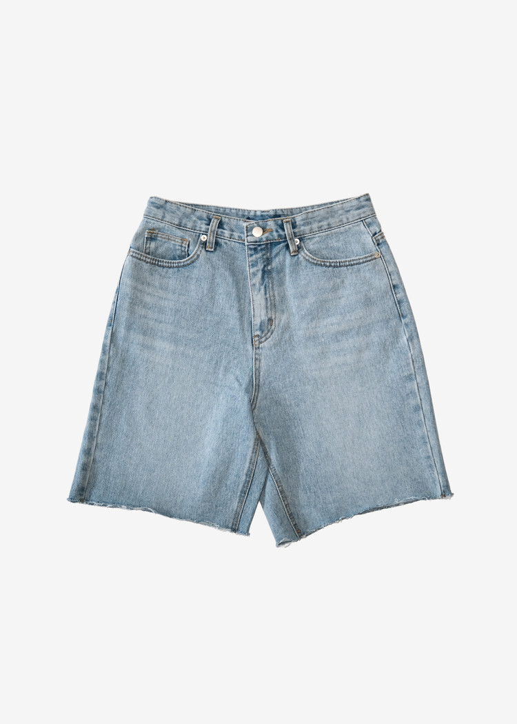 - 스판기 없고 착용시 핏감있는 두께의 데님 소재이며, 밑단 내추럴 절개 마감으로 캐주얼한 느낌의 5부 데님 쇼츠입니다.