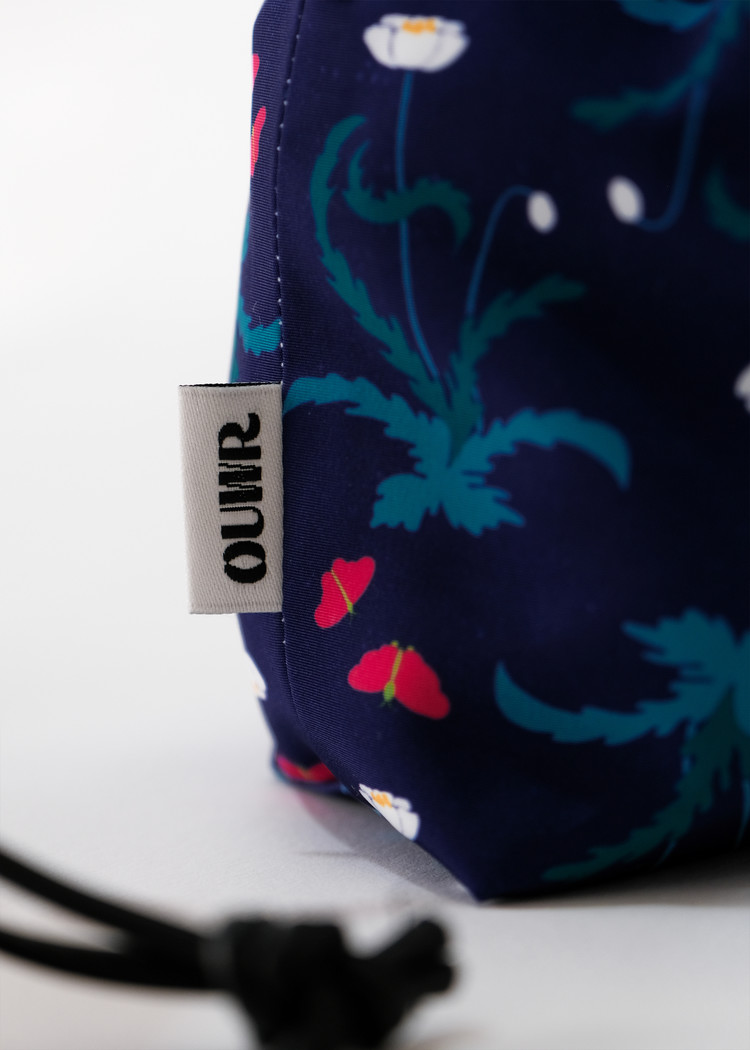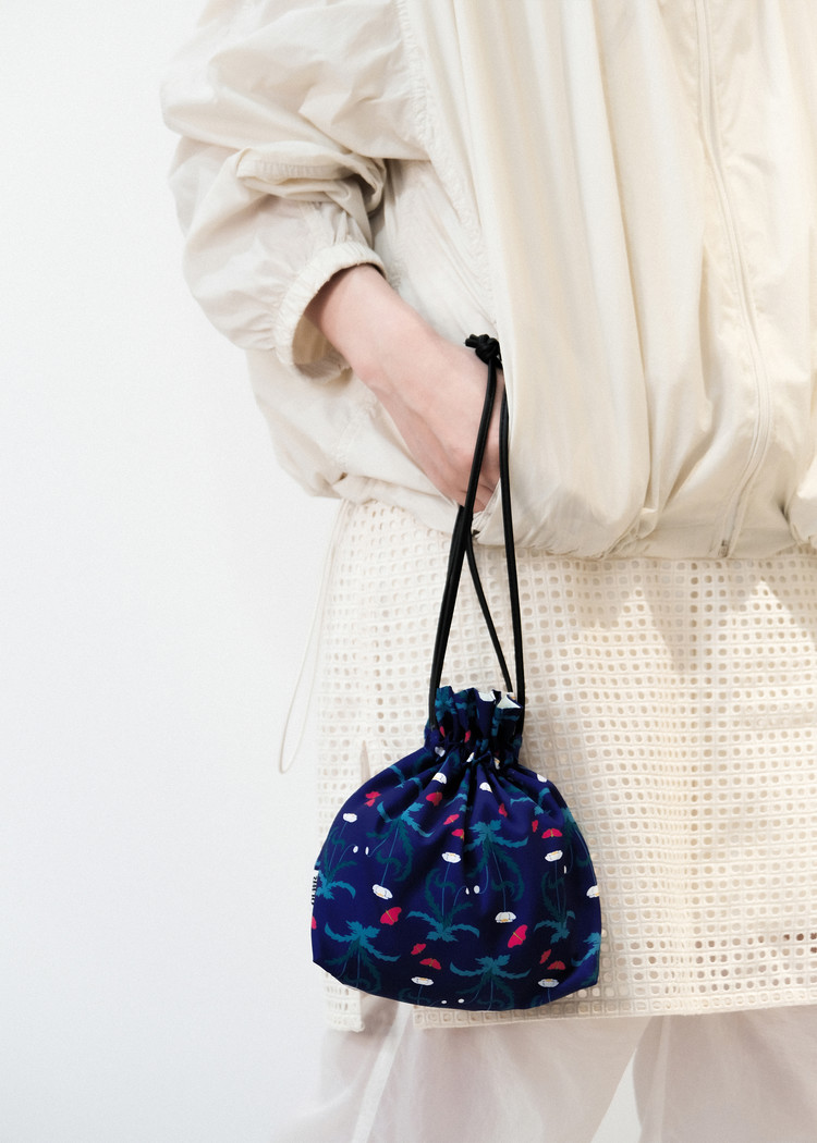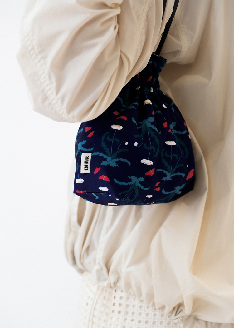 - 幸運を呼び込むために携帯される幸運袋からインスパイアを得て、OUWR P7 草蟲 パターンを取り入れたポーチがデザインされました。