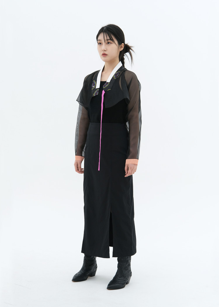 - 폴리 원단으로 제작된 시스루 저고리는 원피스나 청바지, 나시 등의 데일리한 의상과 레이어드하여 가볍게 코디하기 좋은 아이템입니다.