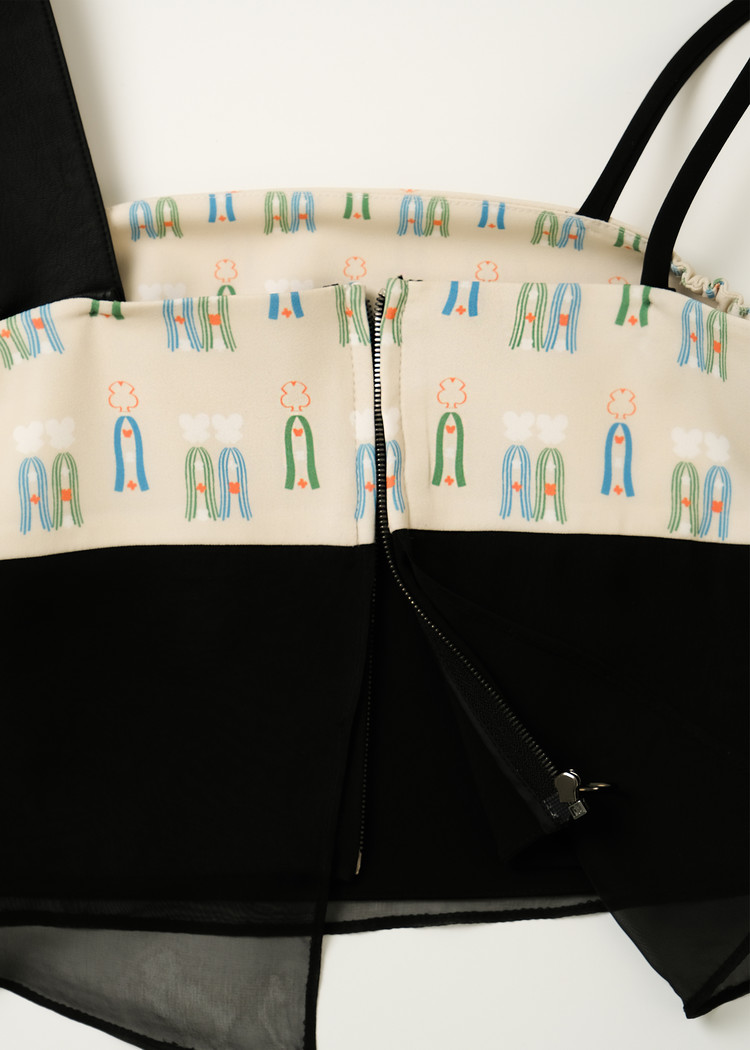 - 오우르 P9 데인티모란 패턴을 덧입히고 저고리의 동정과 깃, 도련, 그리고 거들지를 재해석한 크롭 자켓입니다.