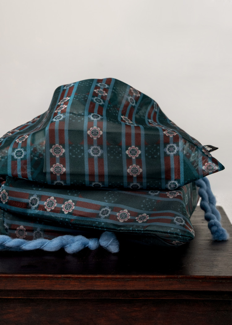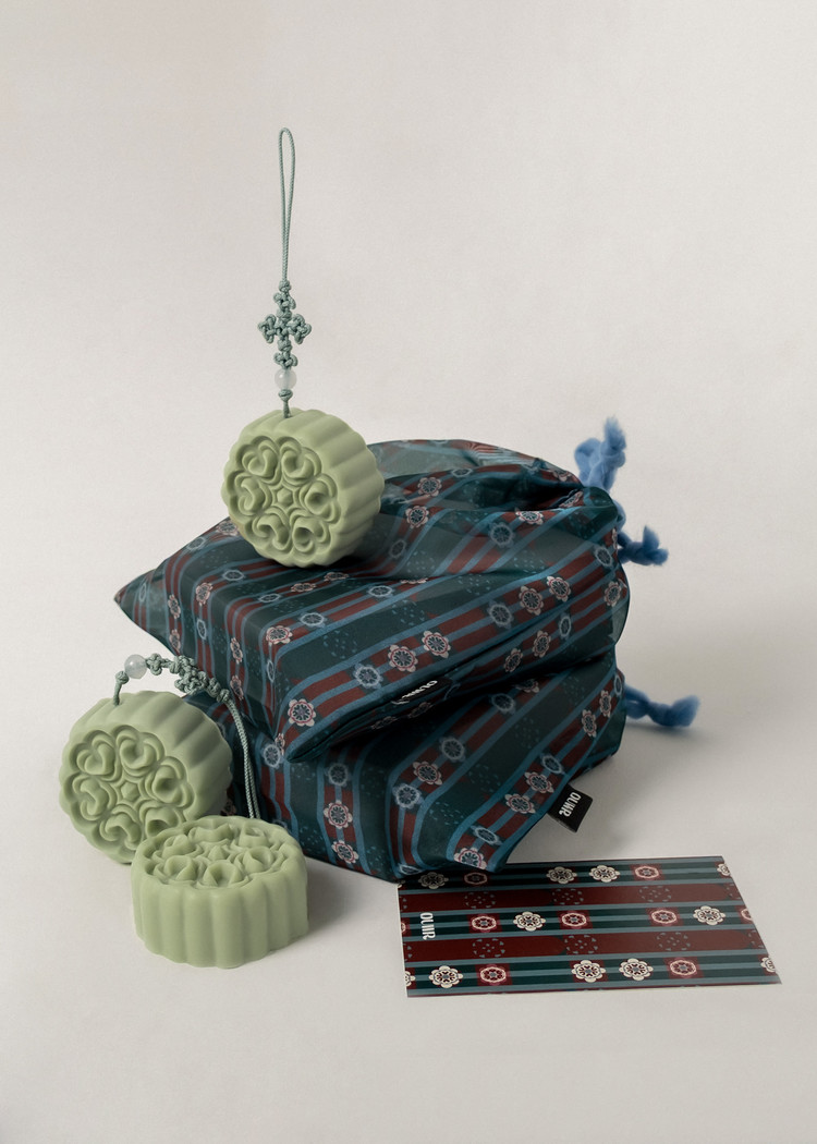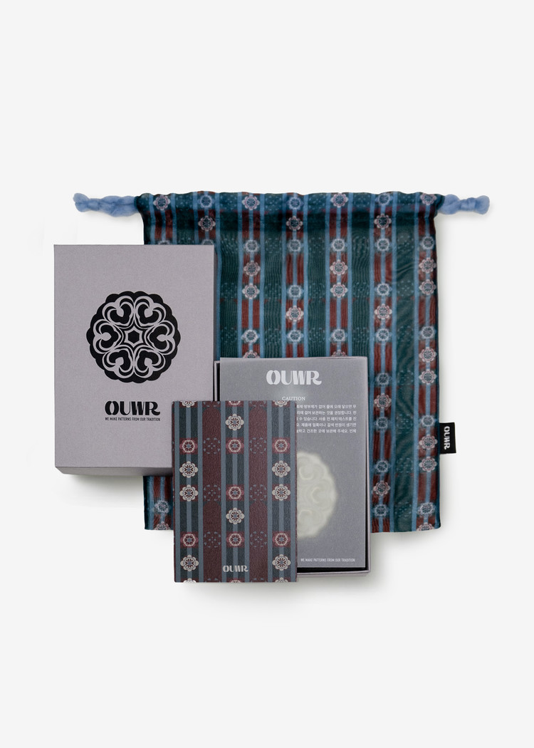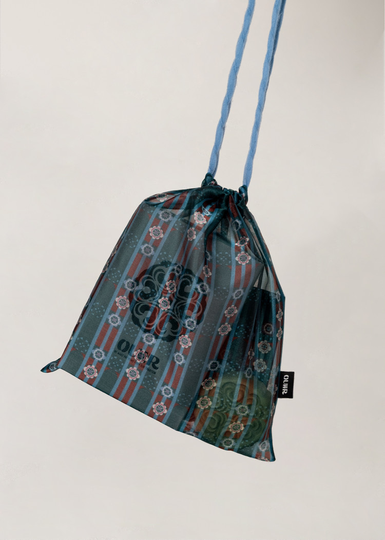 - 幸運を呼び込むために携帯される幸運袋からインスパイアを得て、OUWR P10 花結び パターンを取り入れたポーチがデザインされました。