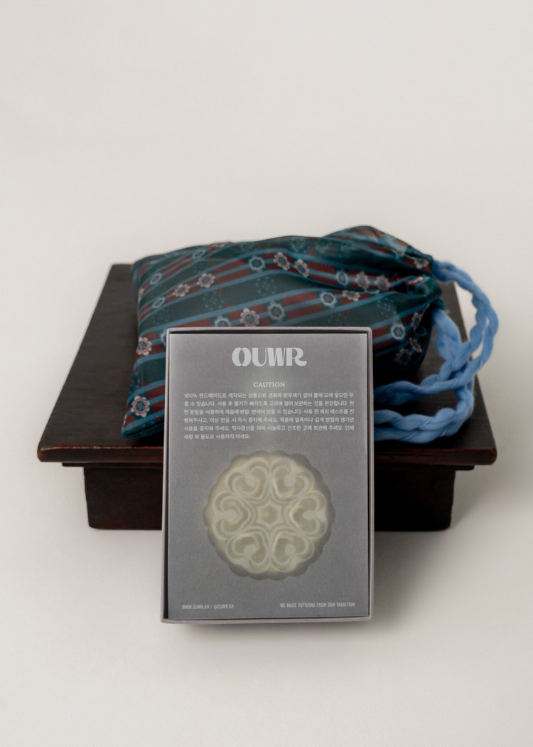 - グルムコッ(雲の花)モチーフのソープノリゲと、福を招くボクポーチを組み合わせた、プレミアムなホリデーセットです。高品質の天然アロマオイルを使用しています。